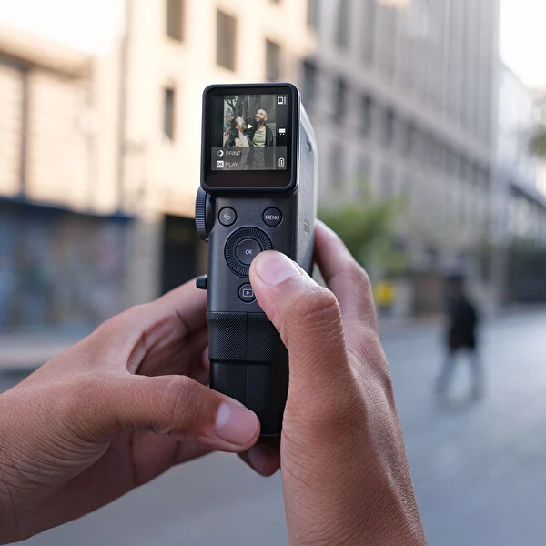 Sofistike siyah duruş, yeşil detaylar ve analog tuşlar ile harmanlanan bu hibrit kamera kullanıcılar için zamansız bir tasarım sunar. Kameranın dahili selfie aynası sayesinde kendinizi kolayca görüp kadrajı ayarlayabilirsiniz. Çekim öncesinde kadrajınızı 1,54” LCD ekrandan da anlık olarak görebilirsiniz. Analog hissini yaşatmak isteyen bu akıllı kamera baskı kolu, vizör, el askısı gibi detaylara sahiptir.